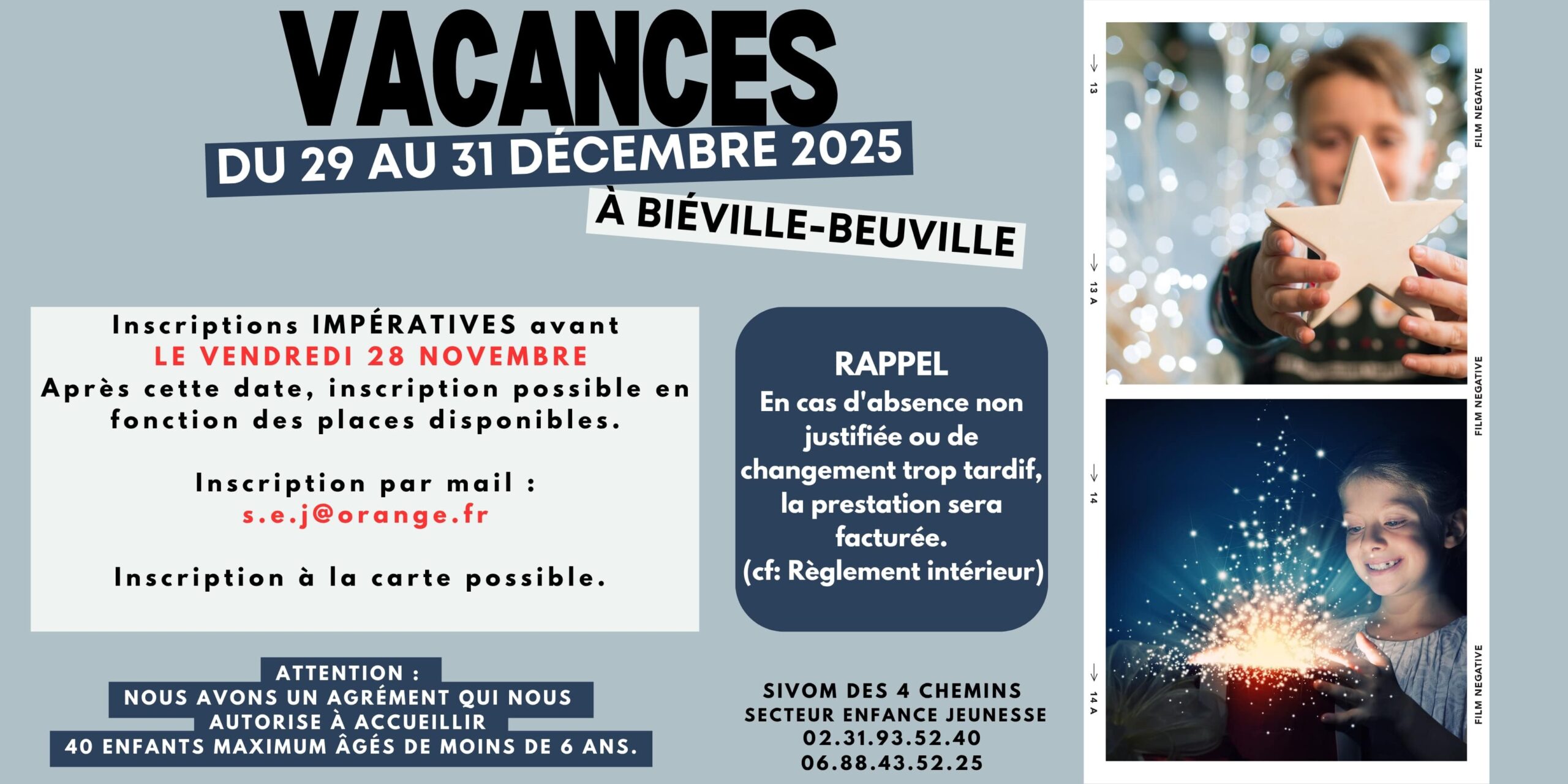 Les inscriptions pour les vacances de fin d’année sont désormais ouvertes !